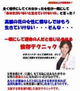 この商品は「一瞬にして運命の人だと信じ込ませる依存テクニック 定価:¥14,800」の中古情報商材です。